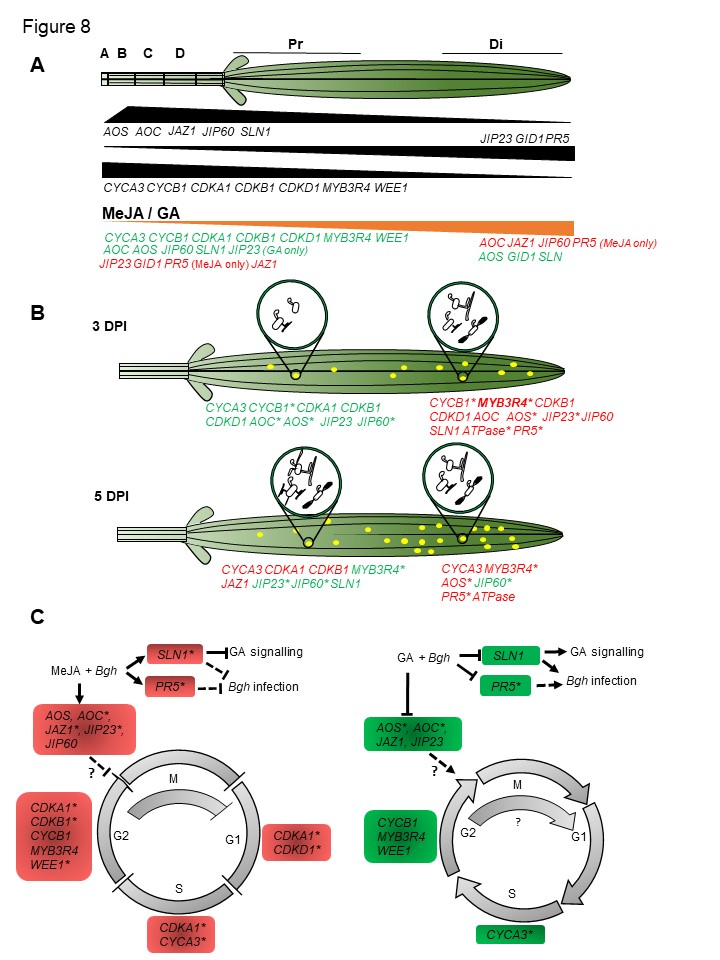 Jasmonates, gibberellins and powdery mildew modify cell cycle progression and evoke differential spatiotemporal responses along the barley leaf